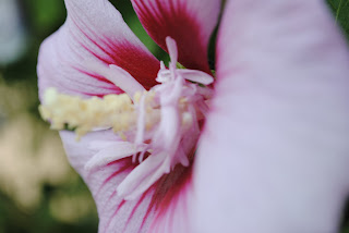 Hibiscus flowers will always remind me of tropical climates and exotic locations. I'm not quite sure how exotic my parents house could be classified as but they still grow some beautiful flowers!